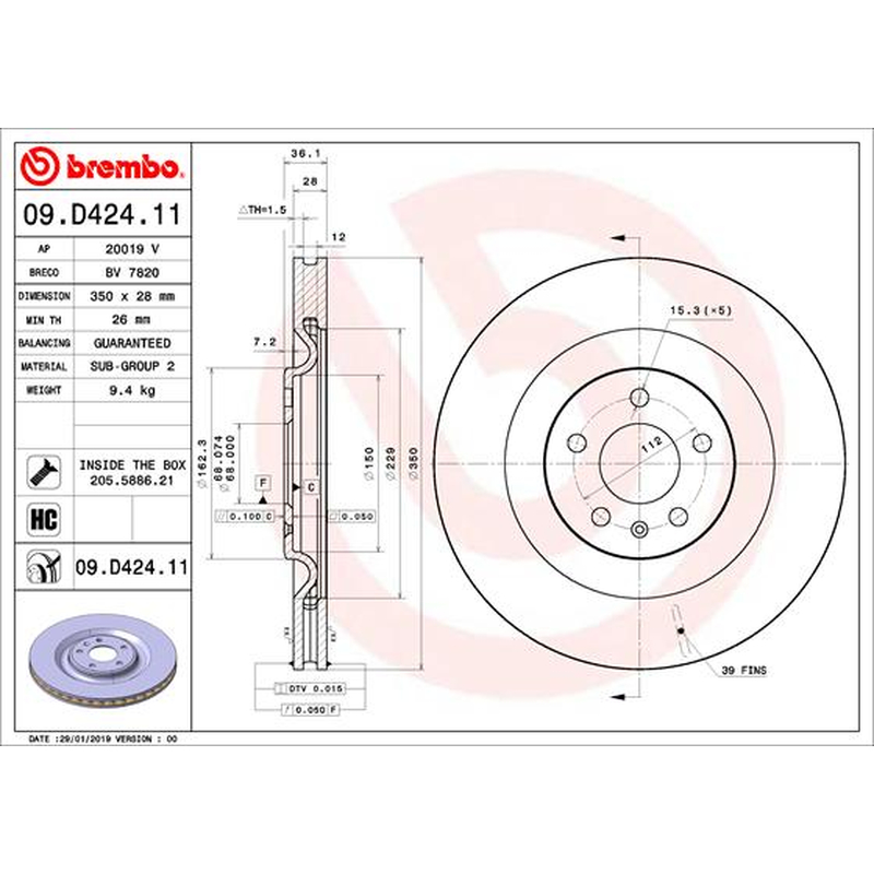 Πάχος δισκόπλακας [mm] 28